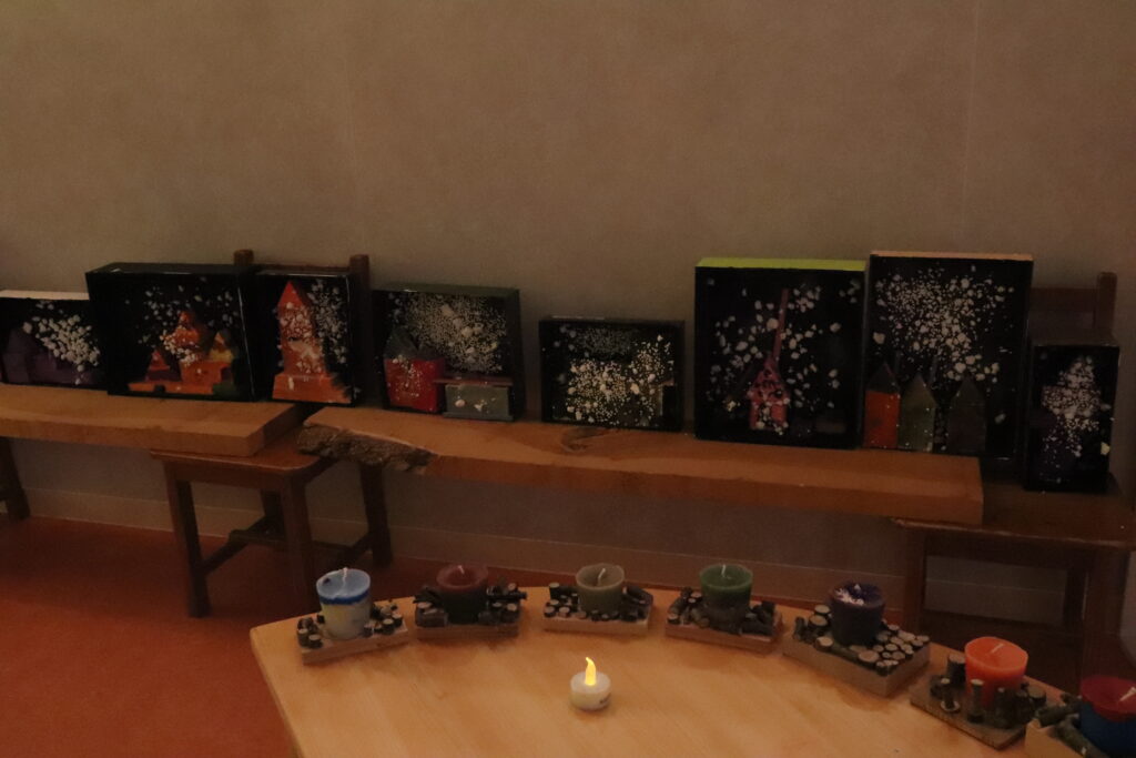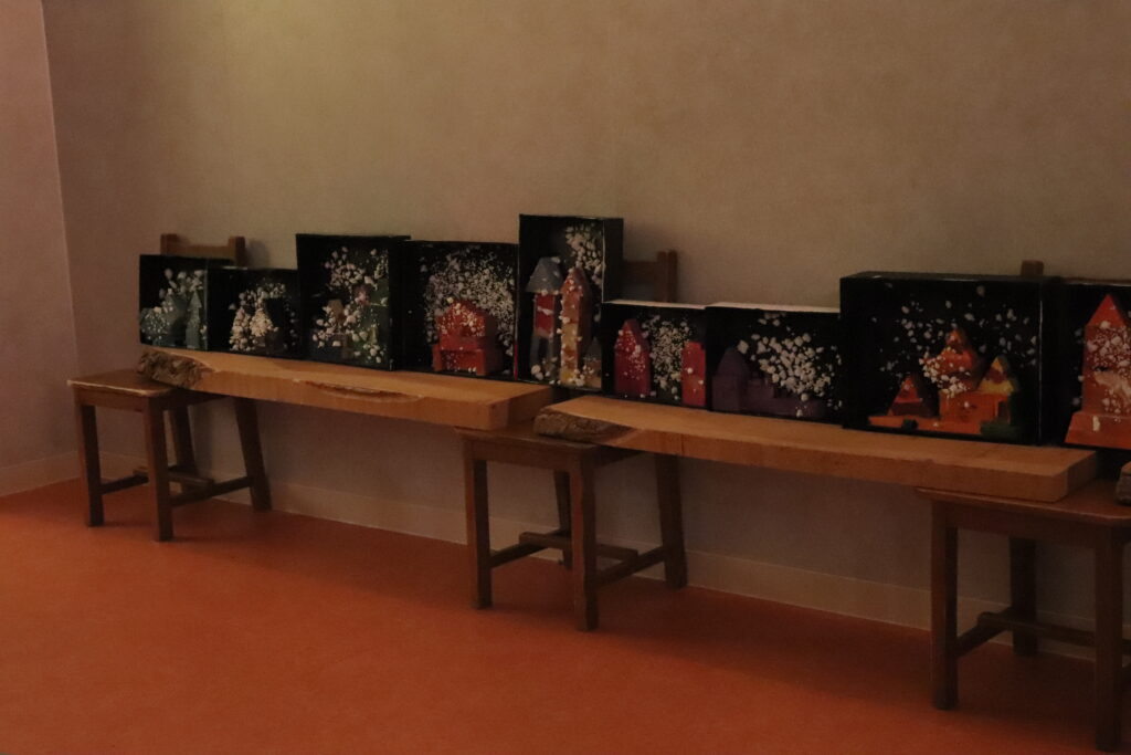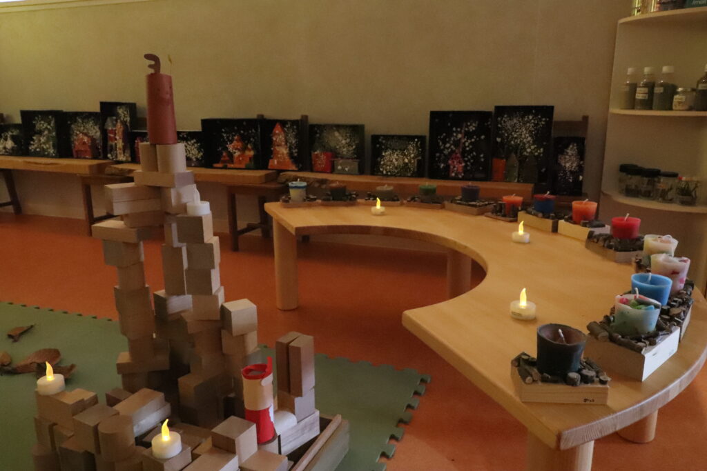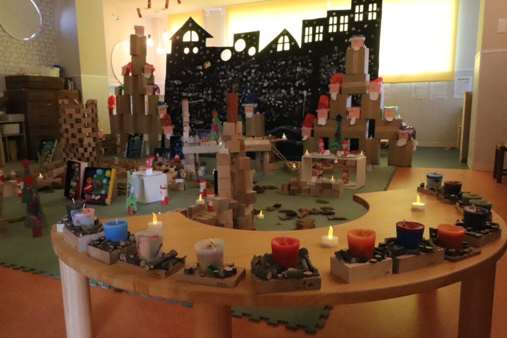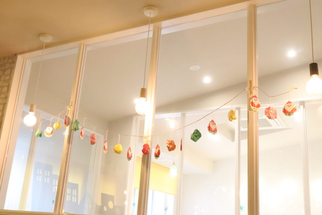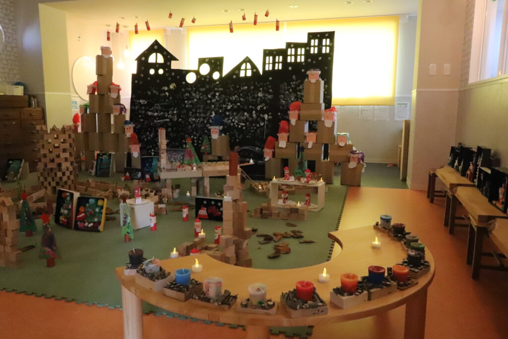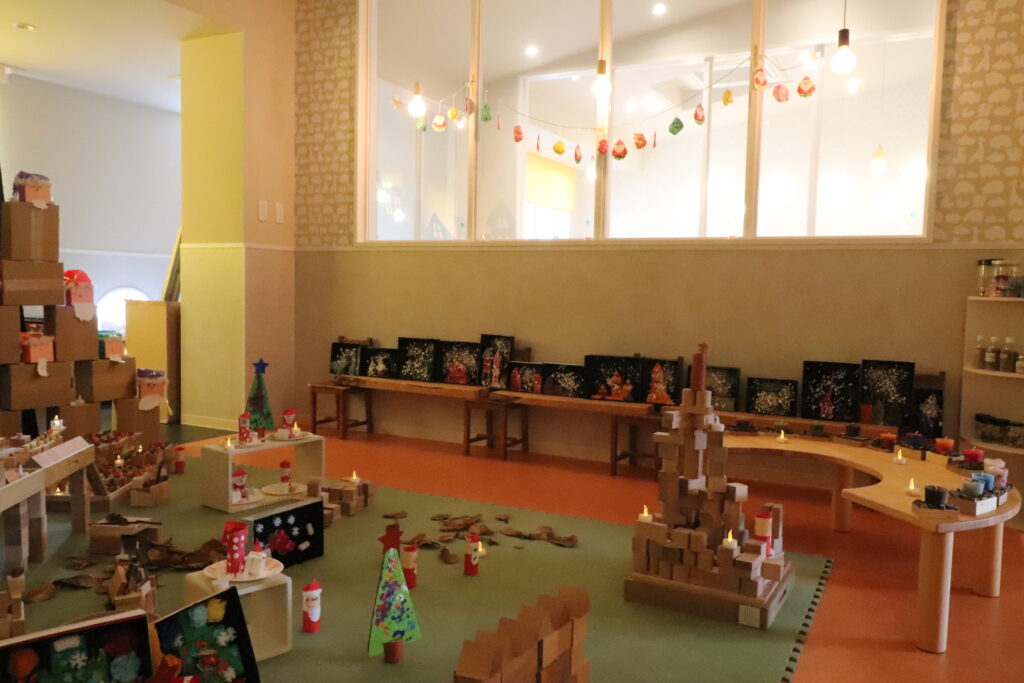 0歳児から5歳児全クラスの造形活動の一つとして12月から取り組んできた、当園2階のアトリエに「ワクワククリスマス」がついに完成しました🎄✨
