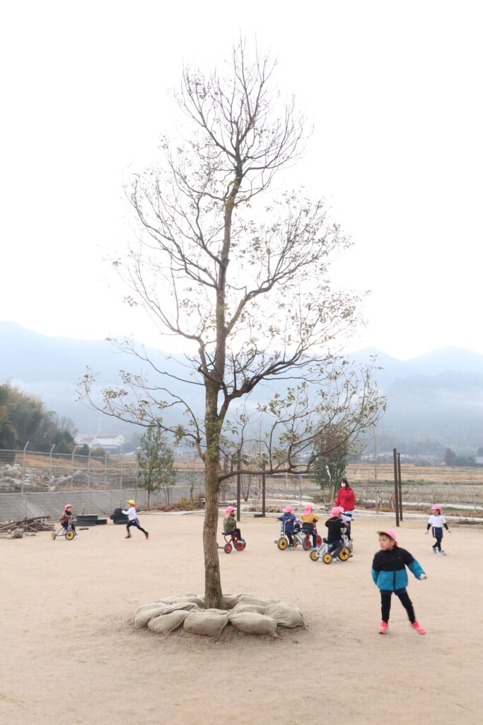 園庭・ビオトープの改造の一環として、新たに多くの樹木を植栽しました。